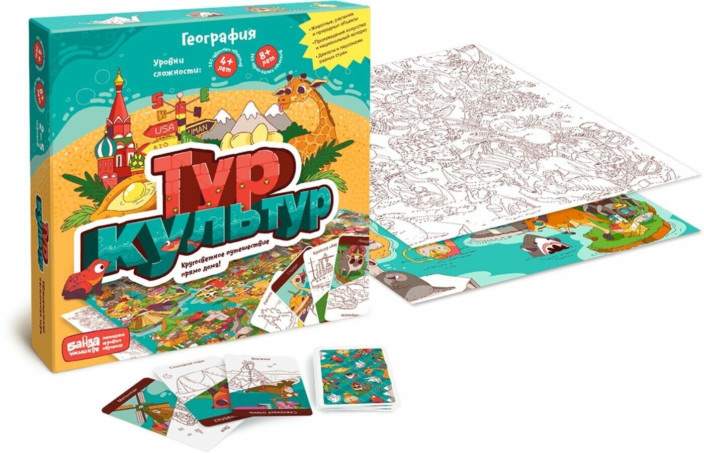 Игра помогает изучать географию, глядя на нее с неожиданной стороны. С ней дети весело познают нашу планету и увлеченно соревнуются в знании стран, материков и океанов. Географические объекты, культурные явления, великие деятели, удивительные растения и непохожие друг на друга животные всего мира. От 8 лет.