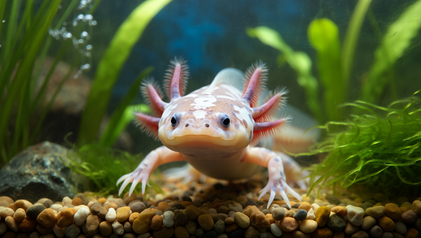 Аксолотль с аквариумом